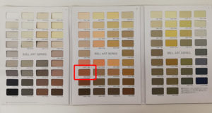 お客様にお見せした色見本。AC-2225という赤味のある茶色になりました。